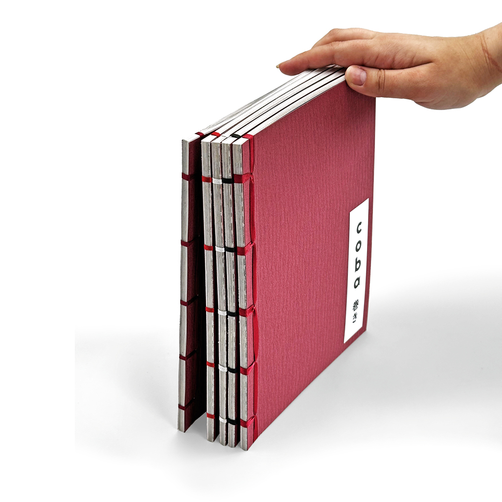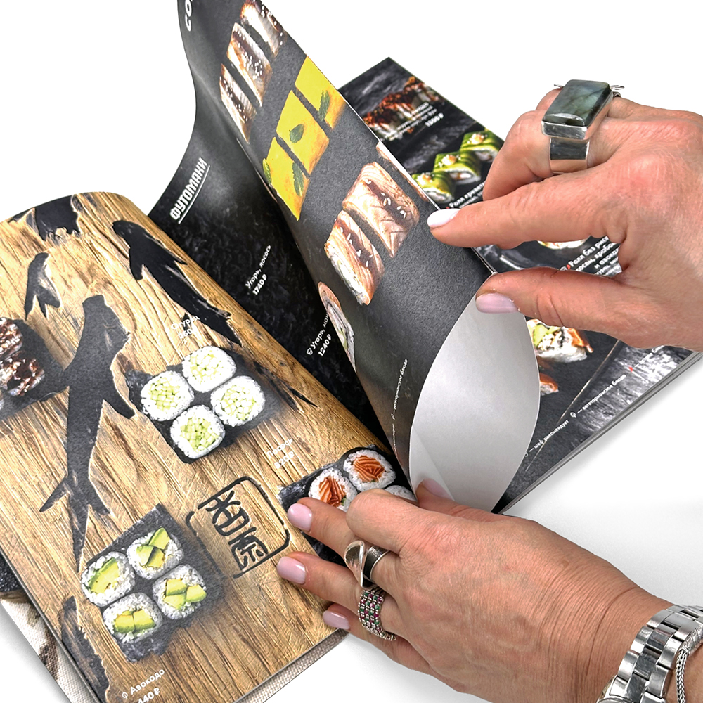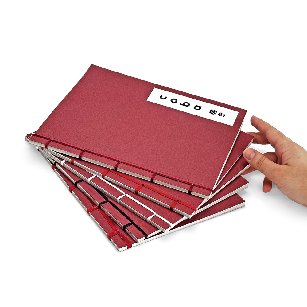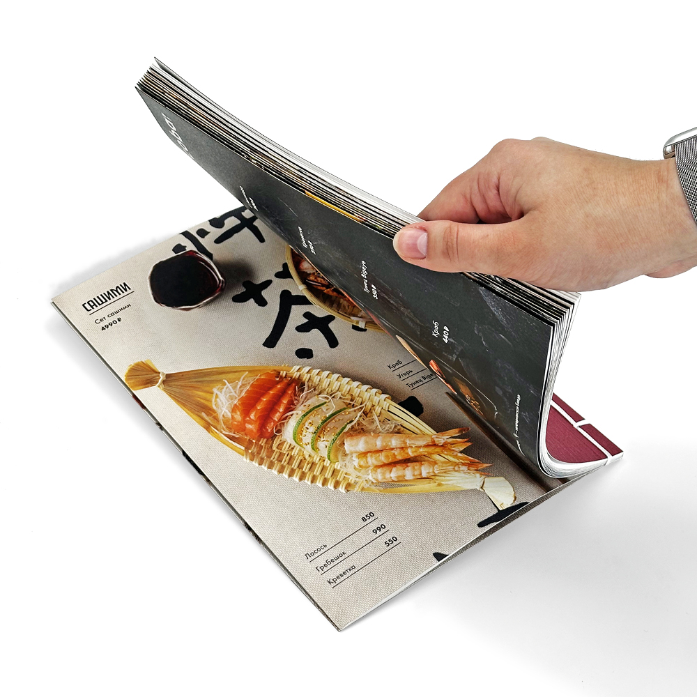 Аутентичное меню для японского ресторана. Ручной переплет атласными лентами разных цветов